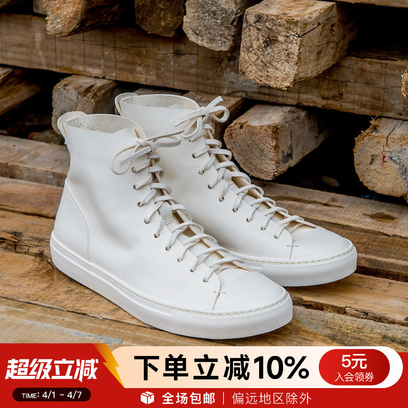 Play! Minimalist Style! Autumn Versatile Handmade High-Top White Shoes for Men, Korean Style Casual Genuine Leather High-Waisted Leather Shoes