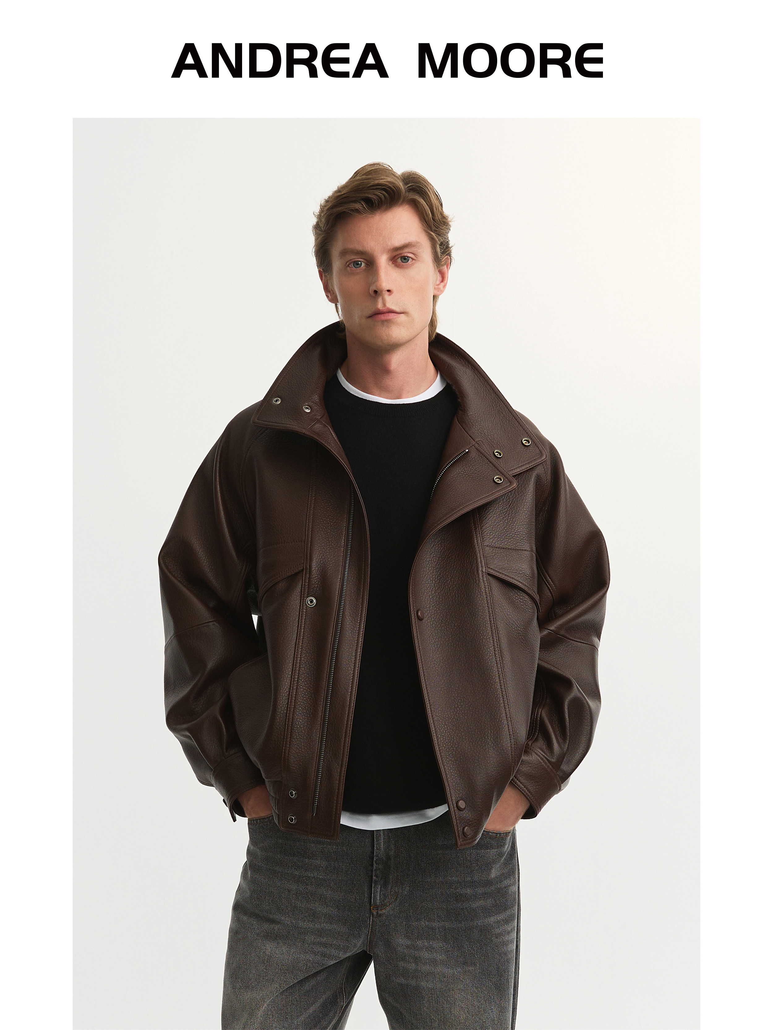 Andrea Moore/Andre Moore Men's New Short Genuine Leather Jacket with Lapel Sheepskin Jacket
