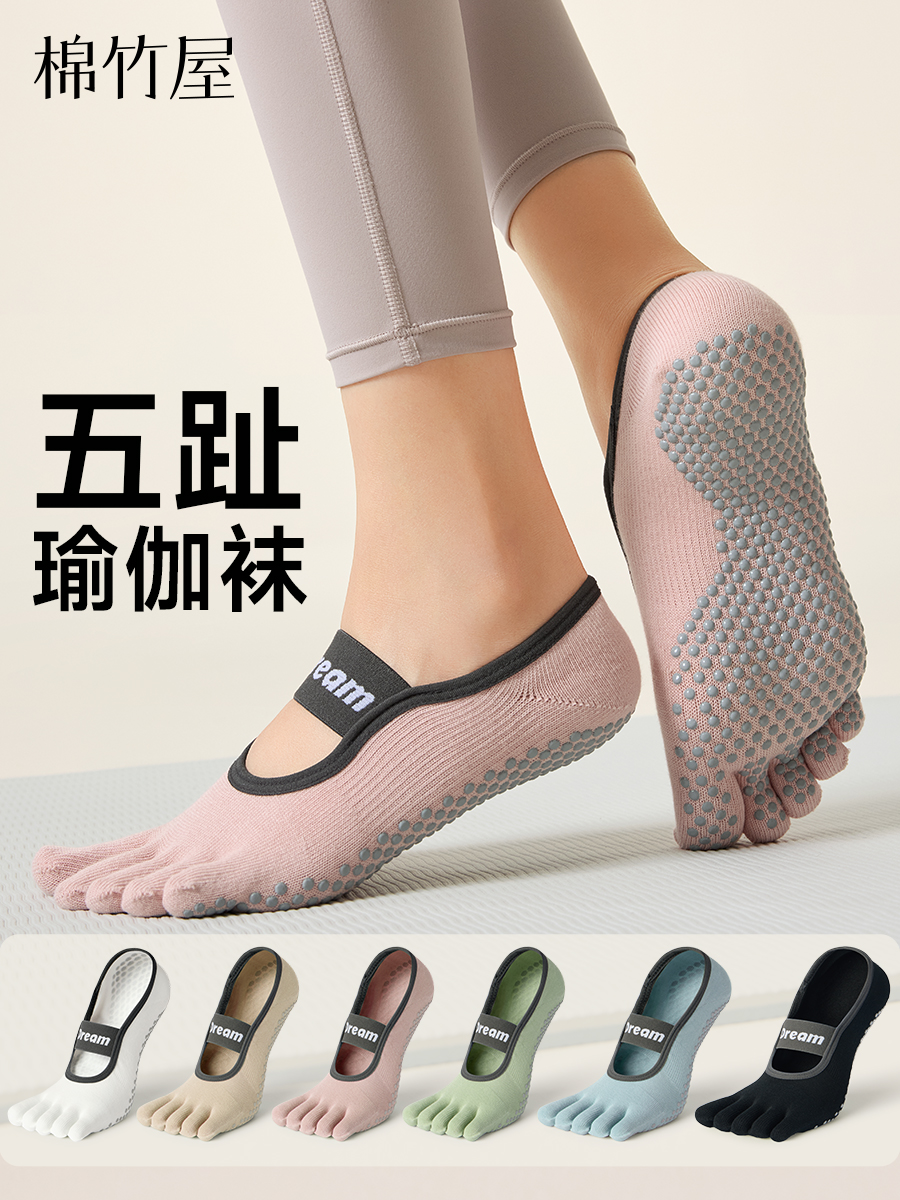 Yoga Socks for Women, Pilates Five-Toe Socks, Split-Toe Spring and Autumn Dance Sports Fitness Non-Slip Professional Boat Socks