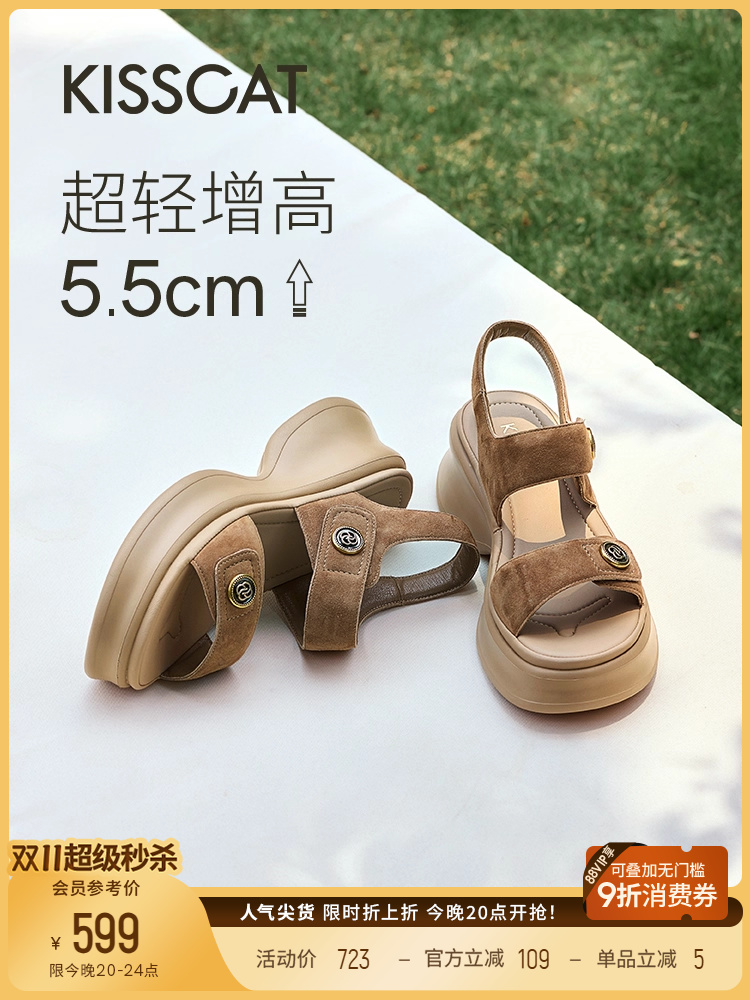 Kisscat Kiss Cat [Coin] Thick-Soled Beach Sandals 25 Summer New High Velcro Sports Sandals for Women
