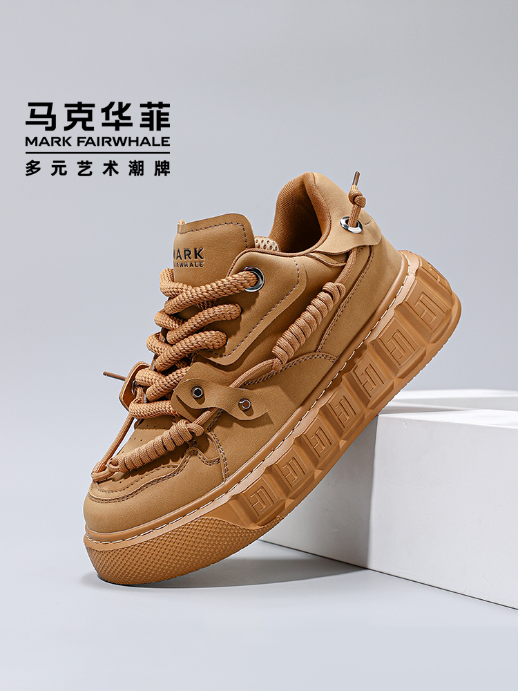 Mark Huafei Men's Sneakers, Thick-Soled Height-Increasing Loafers, Genuine Leather Sports Casual White Trendy Shoes, National Trend Design