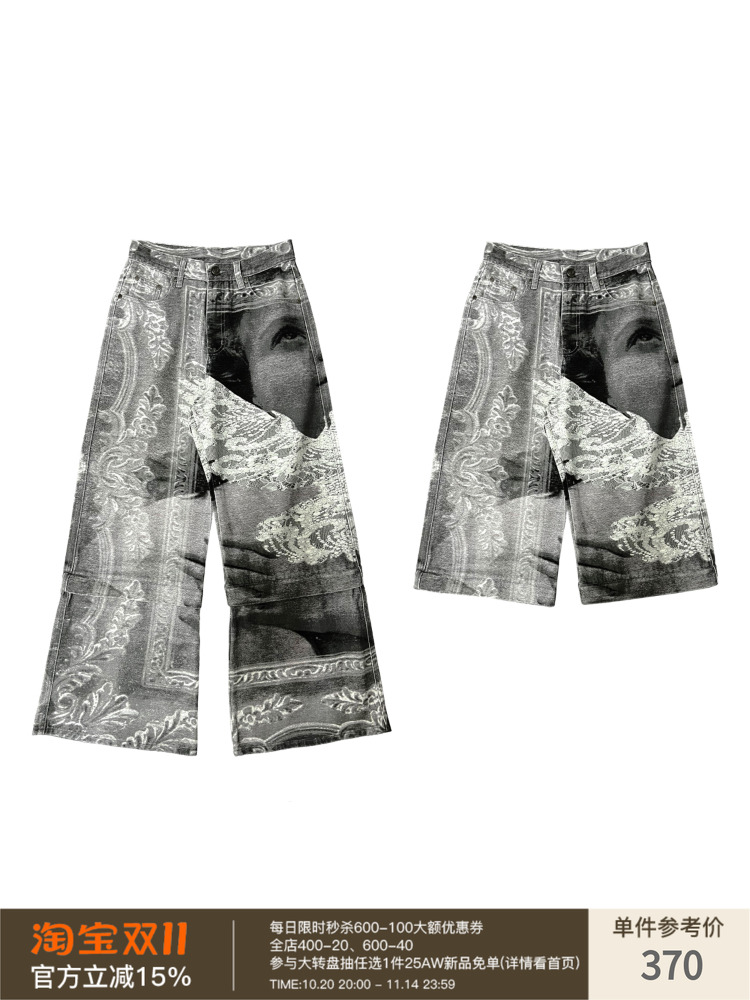 【Same Style as Zeng Bit】Apriority Avian Digital Print Detachable Multi-Wear Wide-Leg Jeans