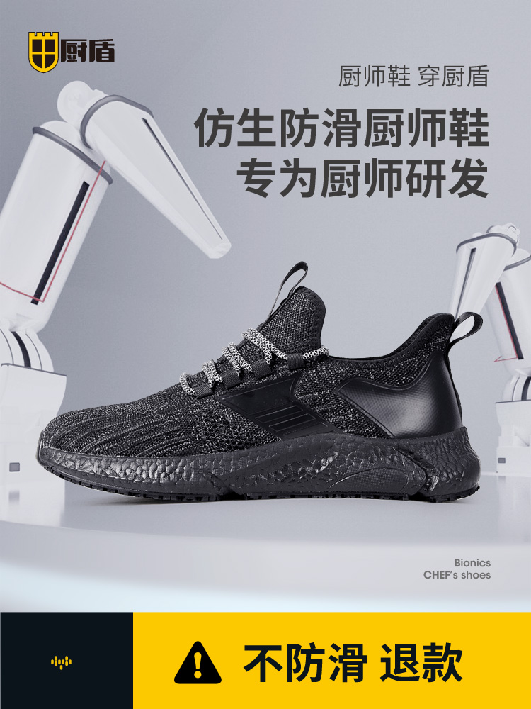 [Cook Shield] Professional Chef Shoes, Non-Slip, Waterproof, Oil-Proof, High-End Kitchen Work Shoes, Black, Odor-Resistant, Autumn, Men's