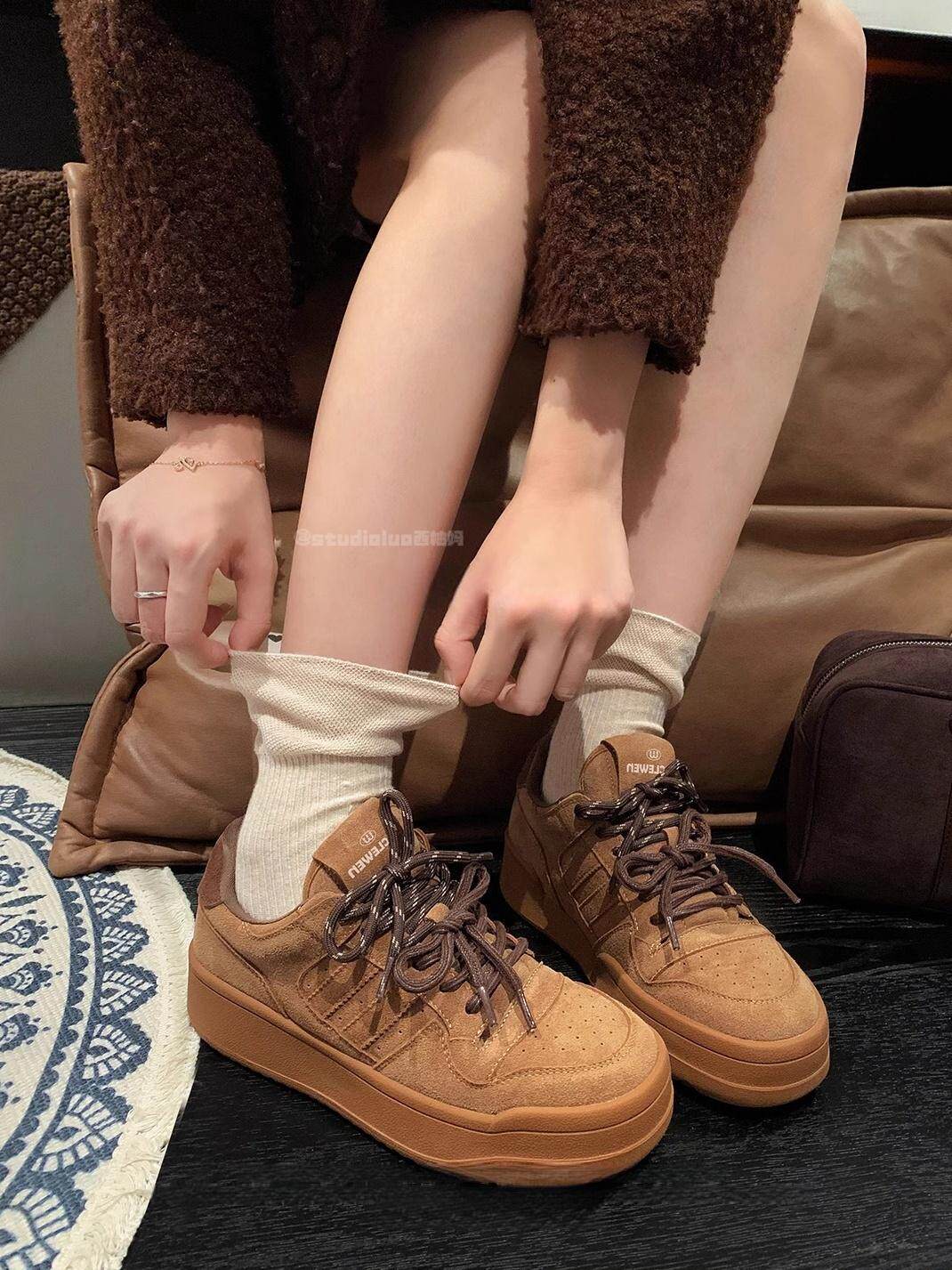 Hong Kong Genuine Leather Thick-Soled Double-Lace Casual Sneakers for Women 2026 Spring and Autumn Fleece-Lined Warm German Training Shoes Fashionable Running Shoes