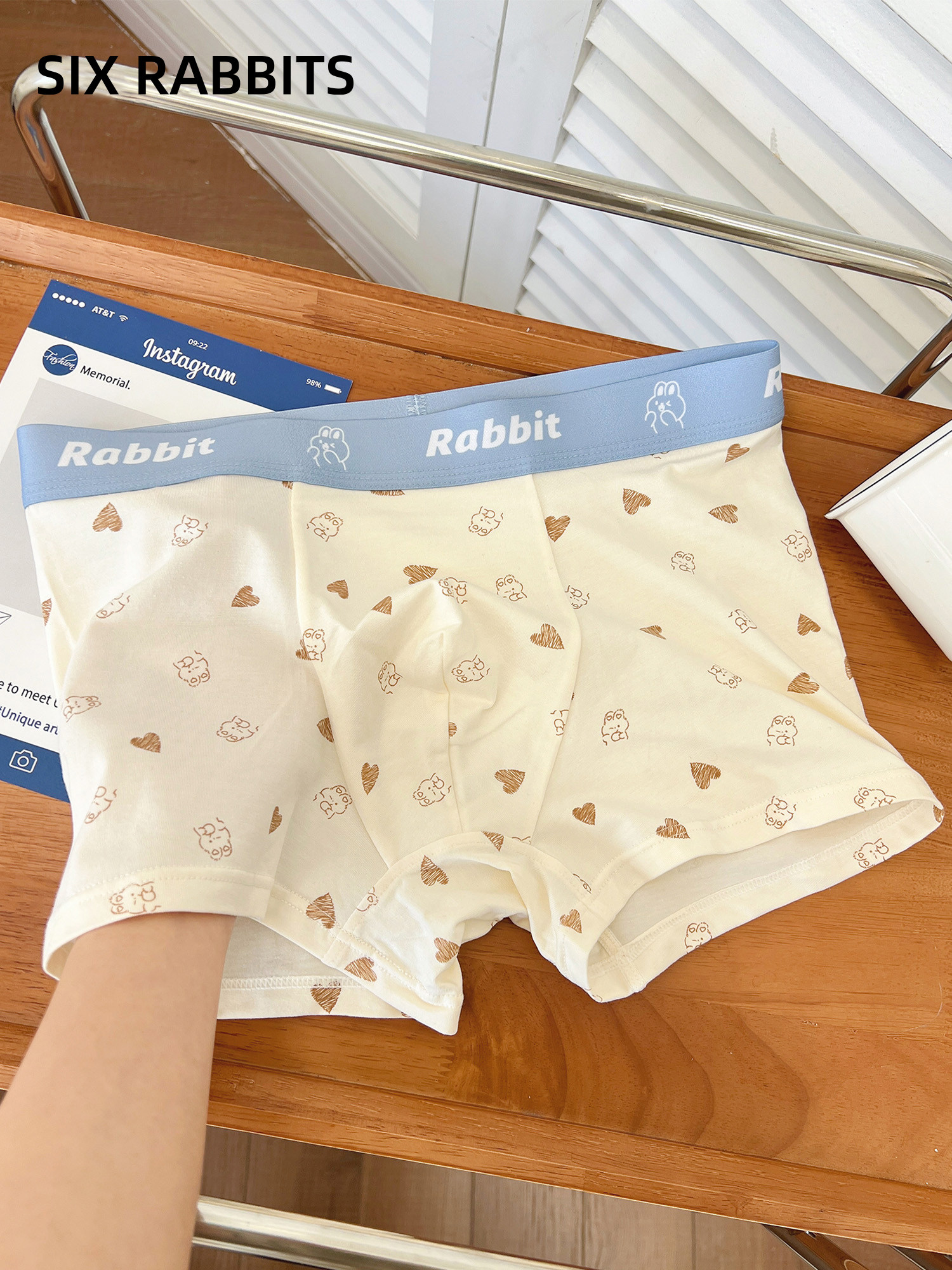 Six Rabbits Cotton Men's Underwear Breathable Crotch Boxer Briefs Loose Comfortable Mid-Waist Hip-Hugging Boxer Briefs for Men