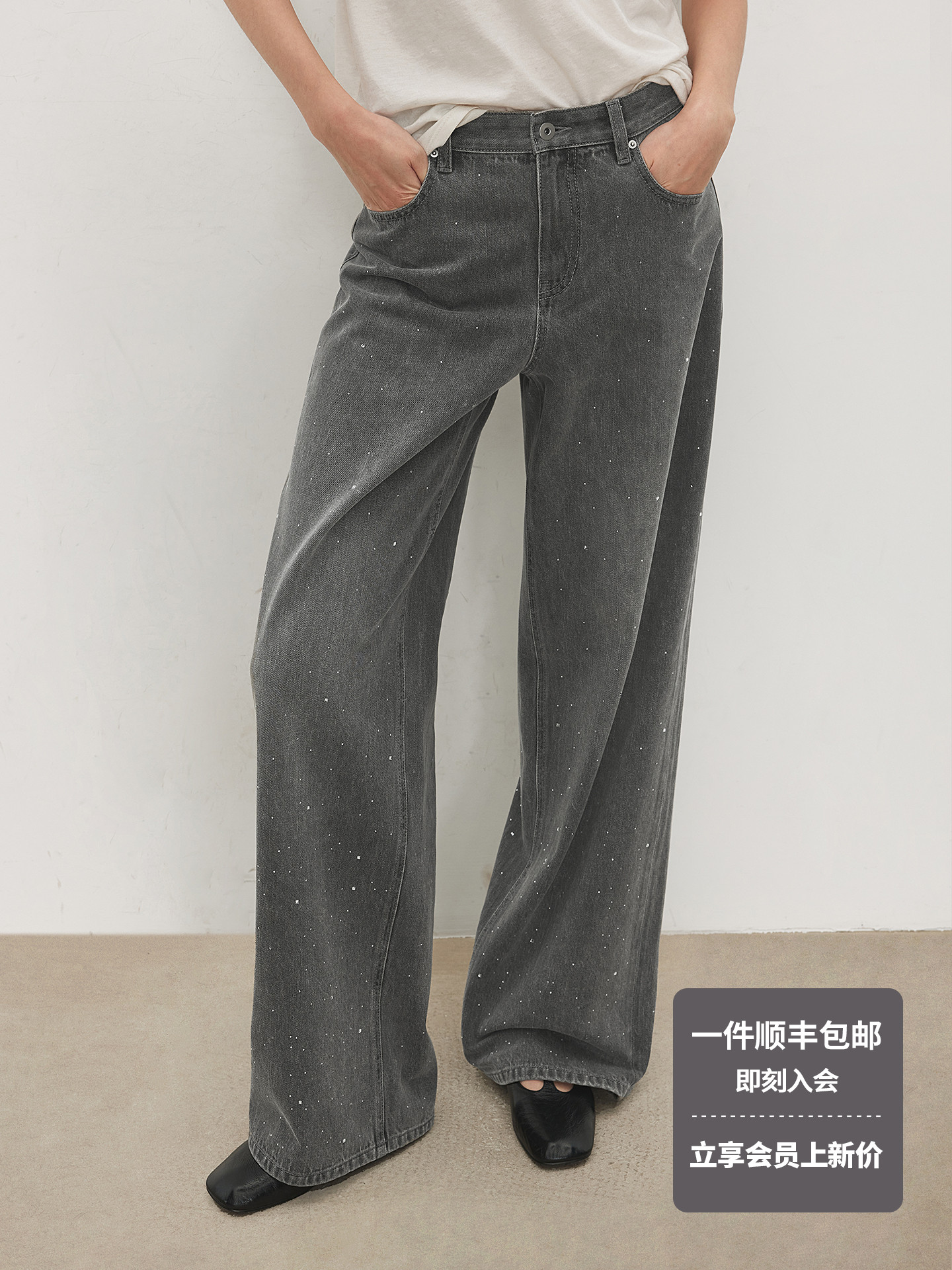 Chicjoc Super Fashion Show Collection_High-End Luxury Gradient Rhinestone Straight-Leg Cotton Denim Diamond Pants