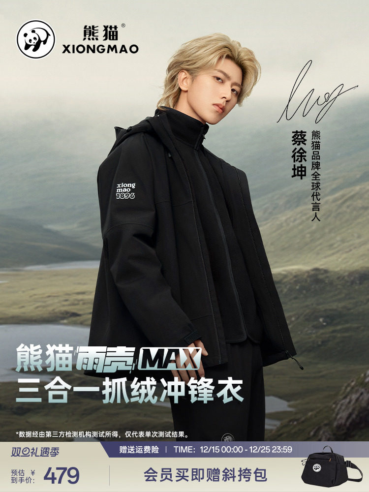 Cai Xukun's Same Style Rain Shell Max Panda Jacket Three-In-One Autumn and Winter Windproof and Waterproof Outdoor Mountaineering Clothing for Men and Women