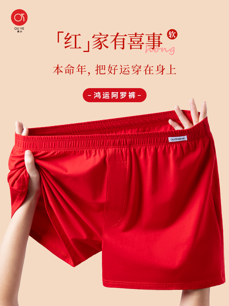Red Zodiac Year Boxer Briefs for Men, 2025 Year of the Snake, Loose Fit, Pure Cotton, Plus Size, Four-Corner Shorts
