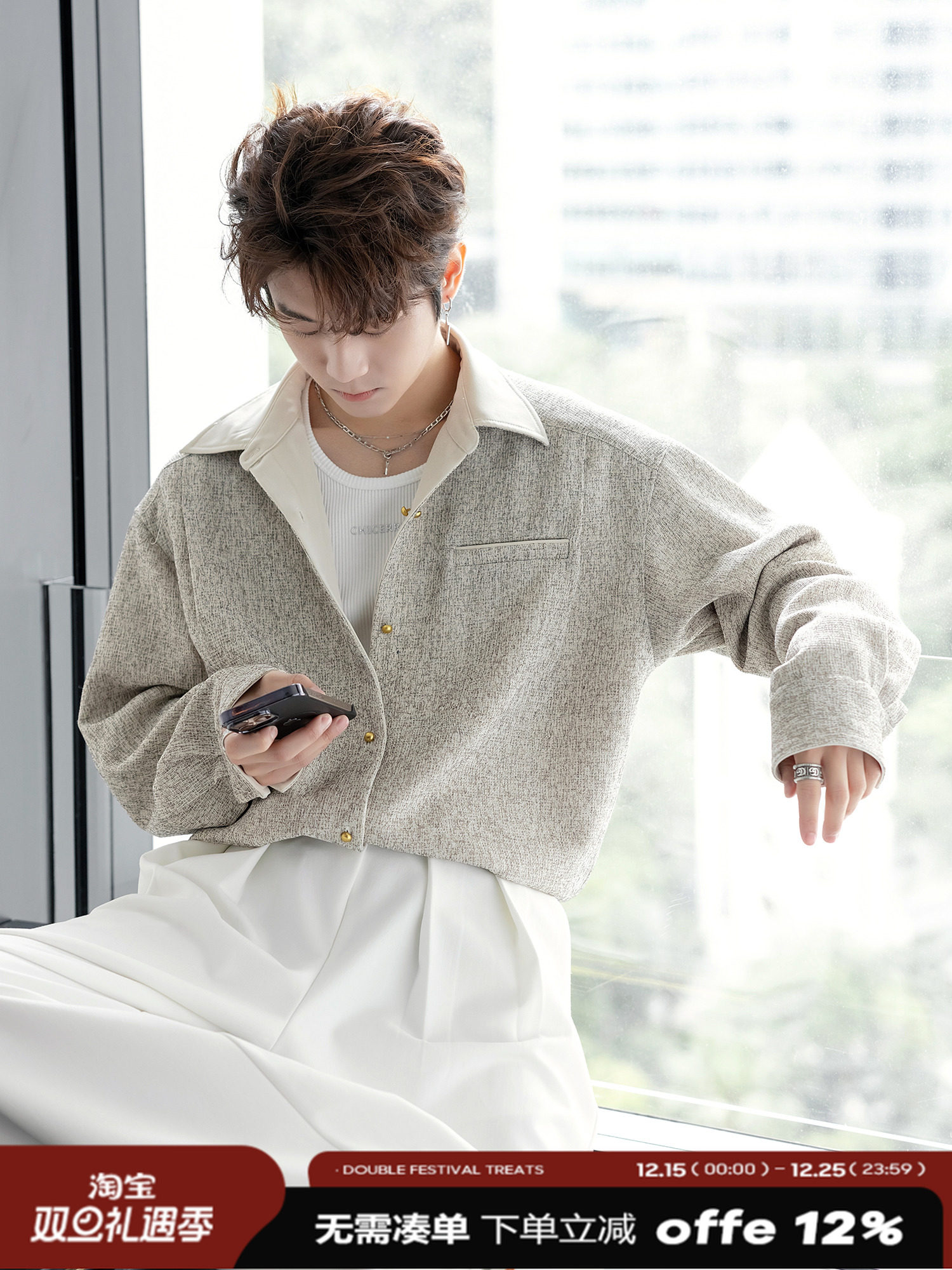 Chicerro Sicilian Men's Light Luxury Chanel-Style Reversible Long-Sleeve Shirt Jacket Men's Shirt with a High-End Feel