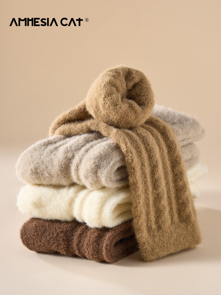 Coral Fleece Socks for Women, Autumn and Winter, Plush Cotton Socks, Warm, Fleece-Lined, Thickened, Home Australian Fleece Sleep Floor Socks