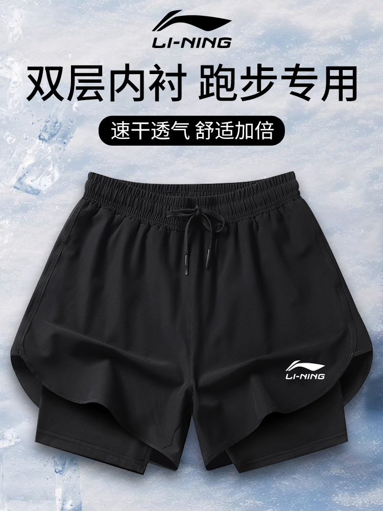 Li-Ning Men's Running Shorts, Quick-Drying, Summer Fitness, Ice Silk Lining, Faux Two-Piece, Track and Field, Marathon, High School Entrance Exam