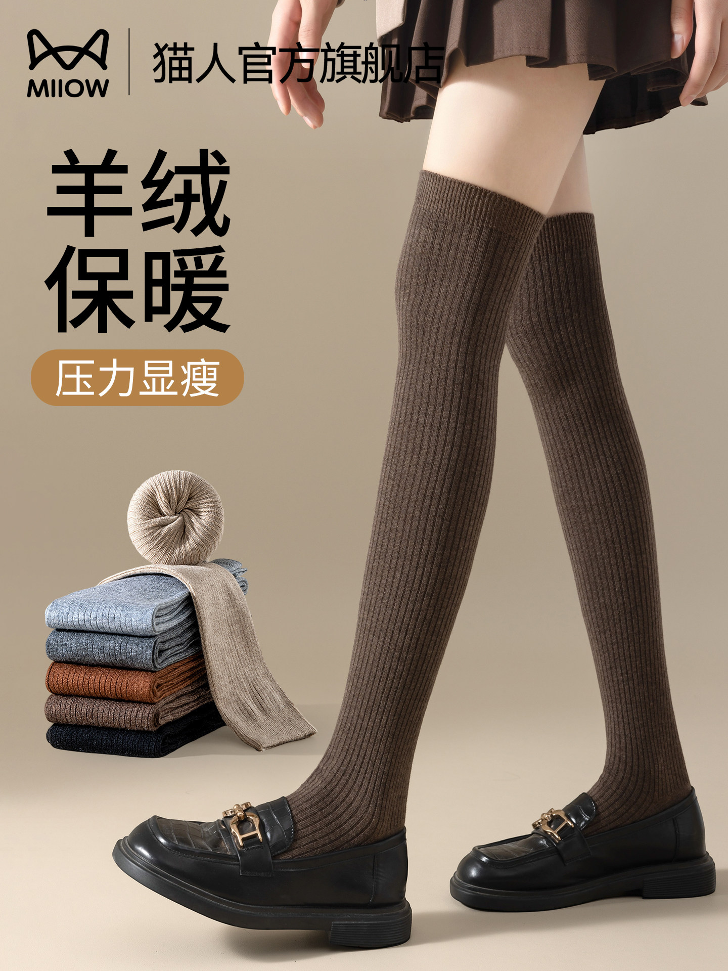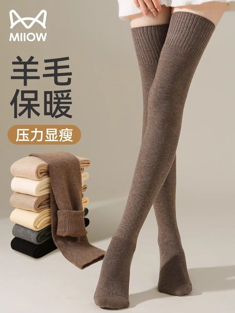 Cat-Themed Wool Over-The-Knee Long Socks for Women, Anti-Slip, Autumn and Winter Calf Knee Pads, Thickened and Lengthened, Warm Thigh Socks