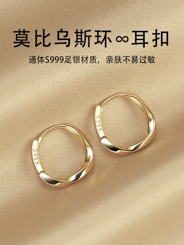 999 Pure Silver Earrings for Women, 2025 New Popular Style, High-End Feel, Ear Cuffs, Ear Care, Plain Hoop Earrings