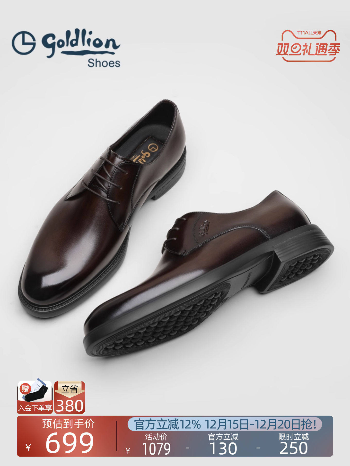 Goldlion Men's Shoes Official Authentic Autumn and Winter New Business Brown Leather Shoes Men's Height-Increasing Genuine Leather Groom Wedding Shoes