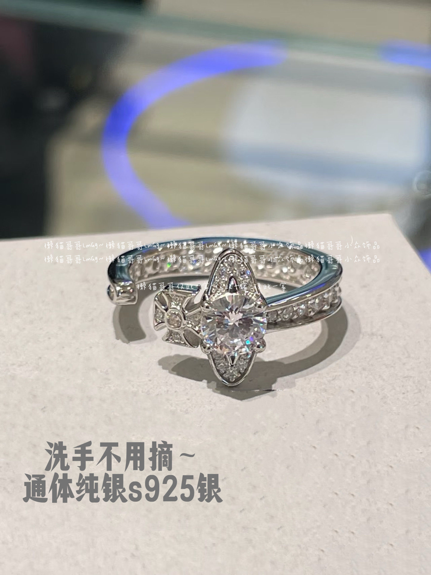 Lazy Cat Brother|Diamond Level! Classic Side-Lying Saturn Full Diamond Ring Versatile for Daily Commuting Pure Silver 925
