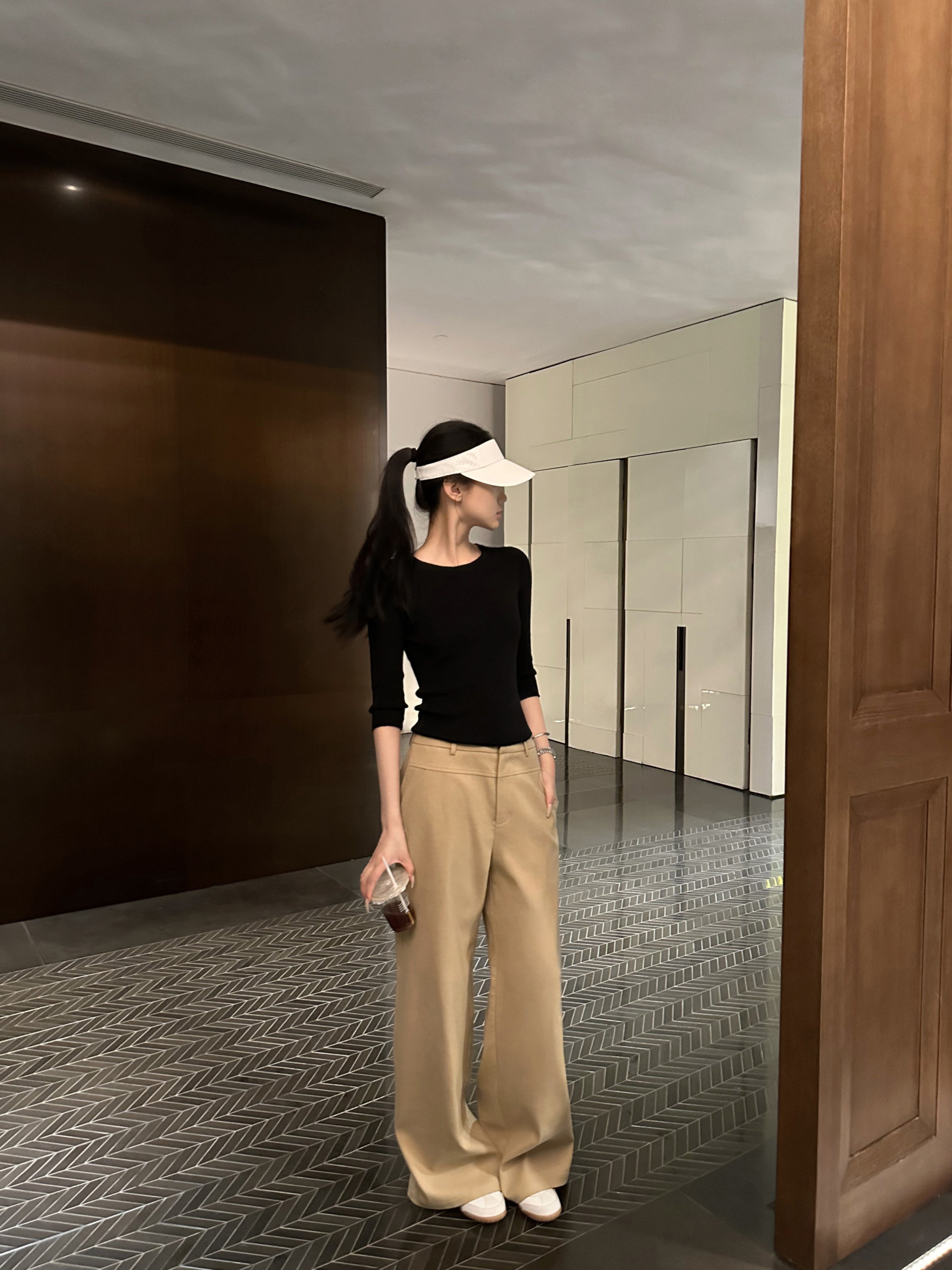 5Werkwen Yuppie Old Money | Laf Aesthetics Minimalist Retro Khaki Pants Casual Pants Loose Straight Pants for Women