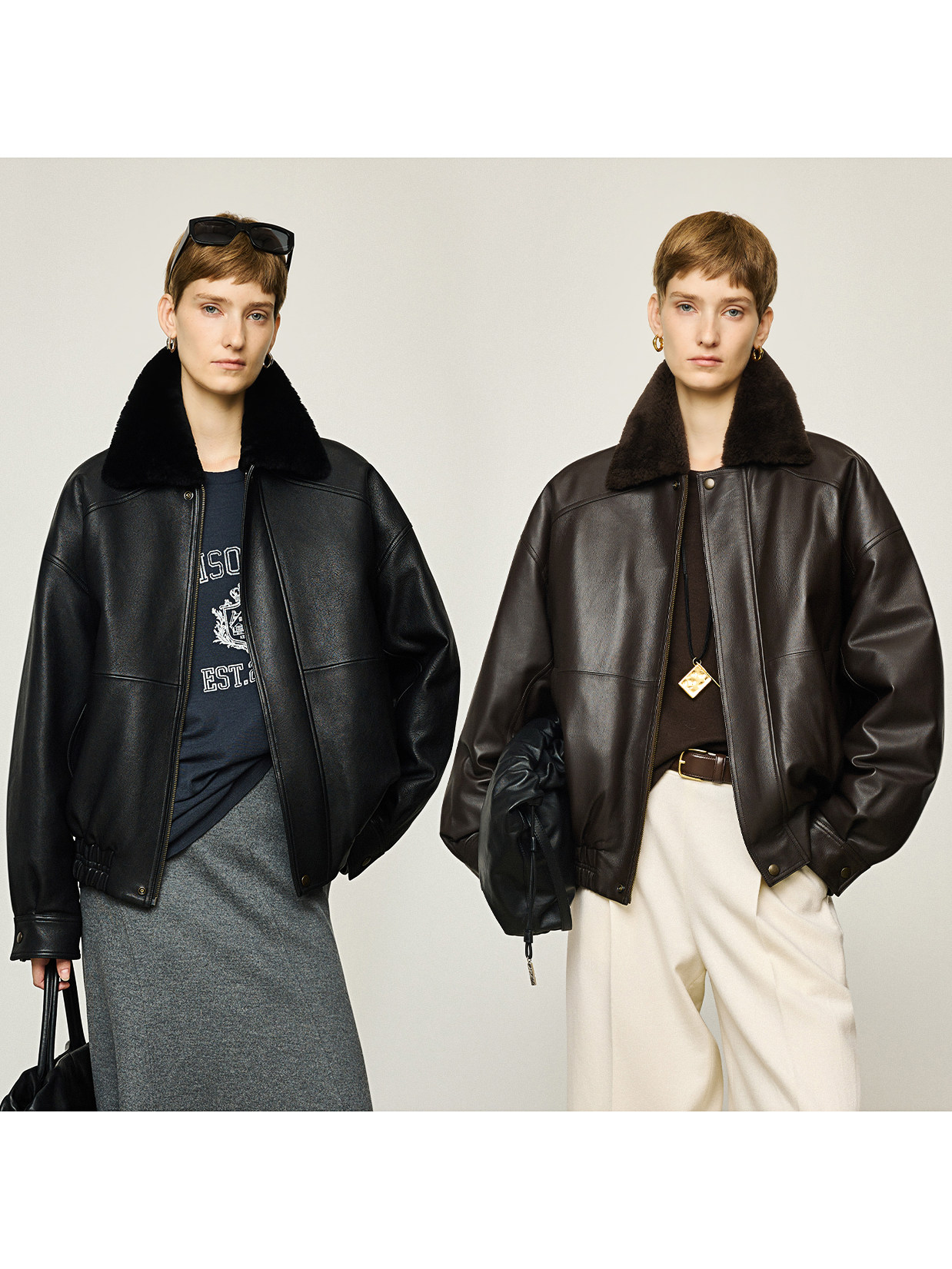 Open-Front/French Imported Soft Lambskin with a Foamy Texture, Hungarian 95% White Goose down Genuine Leather down Jacket
