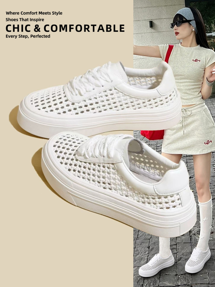 Sanli Large Mesh White Sneakers for Women 2026 Summer New Thick-Soled Versatile Woven Breathable Mesh Casual Sports Sneakers