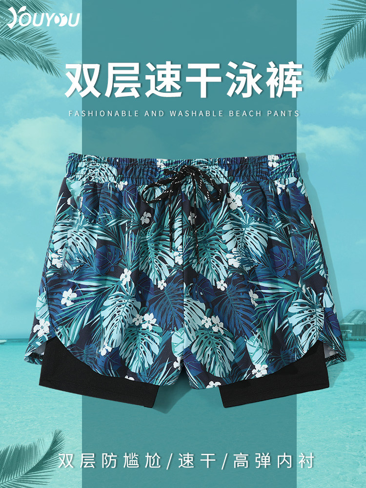Men's Swimming Trunks 2025 New Model Professional Double-Layer Quick-Drying Anti-Embarrassment Swimwear Beach Shorts Swimming Gear