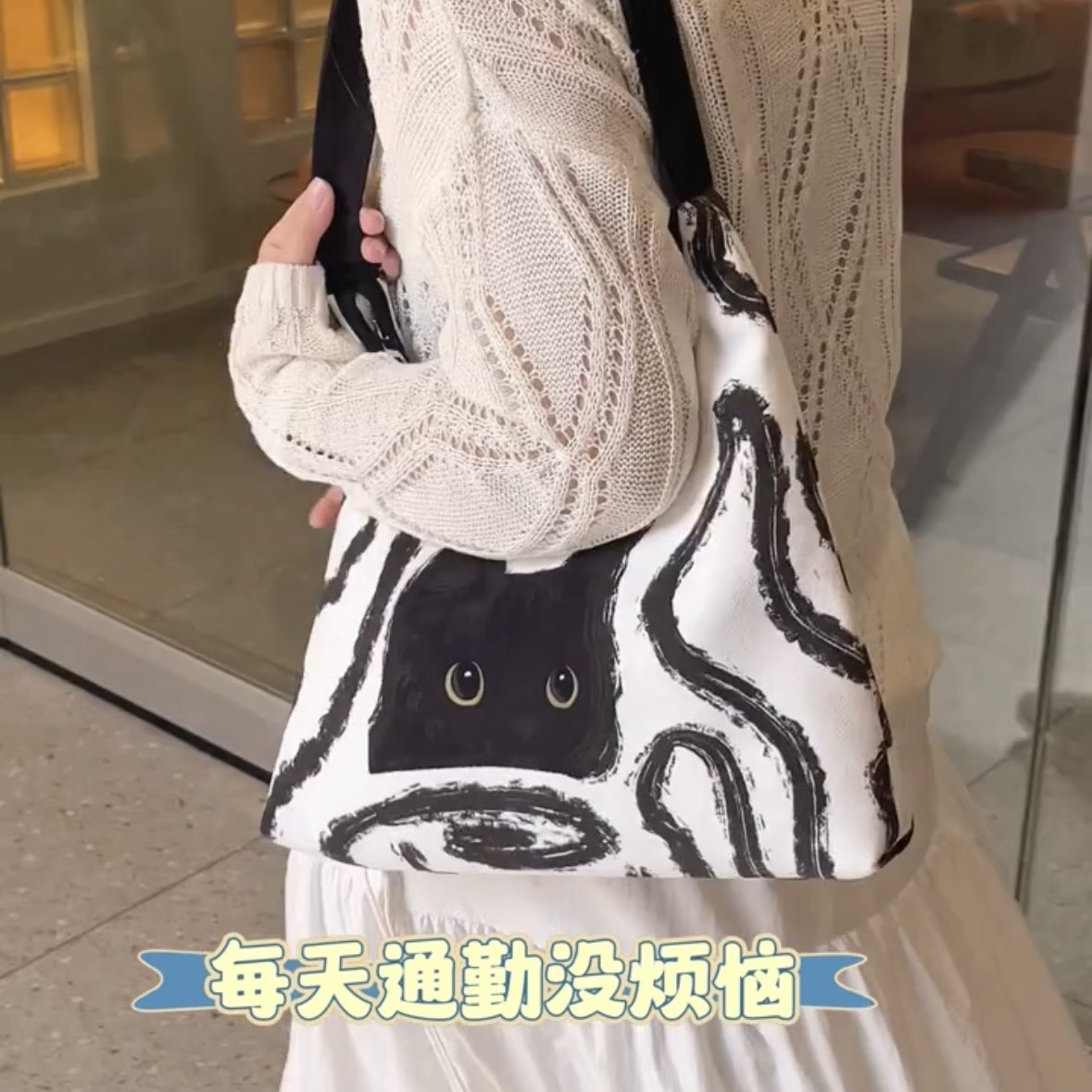 Cute Black Cat Single Shoulder Crossbody Bag for Women, Versatile Handbag, New Large Capacity Casual Canvas Bag for Commuting