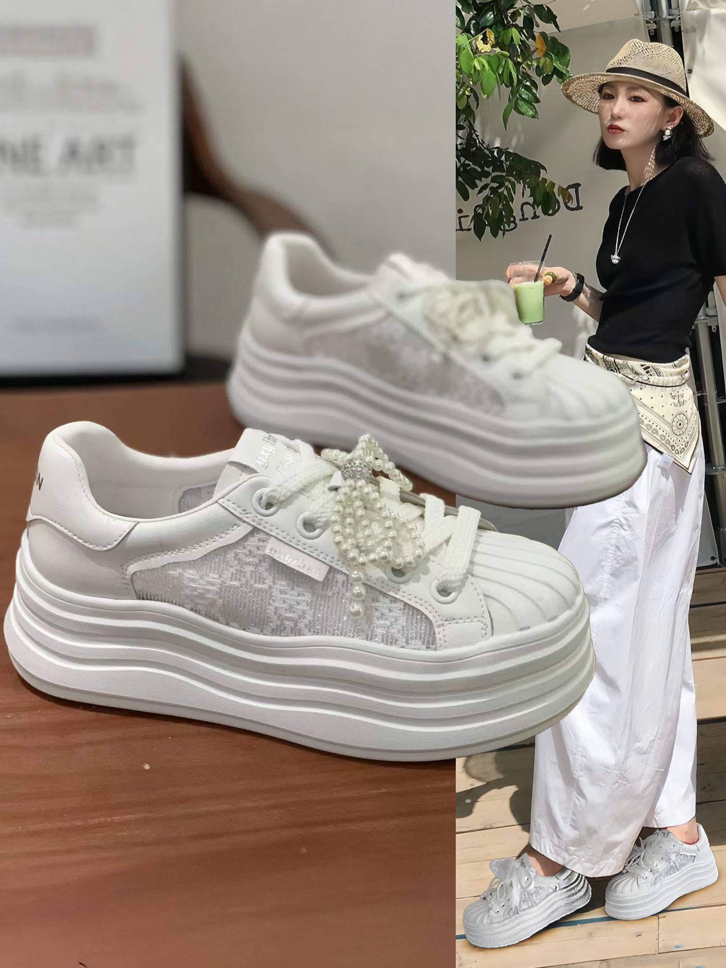 Hong Kong Niche Shell-Toe Mesh Breathable Sneakers for Women 2025 Summer New Versatile Casual Thick-Soled Height-Increasing White Shoes
