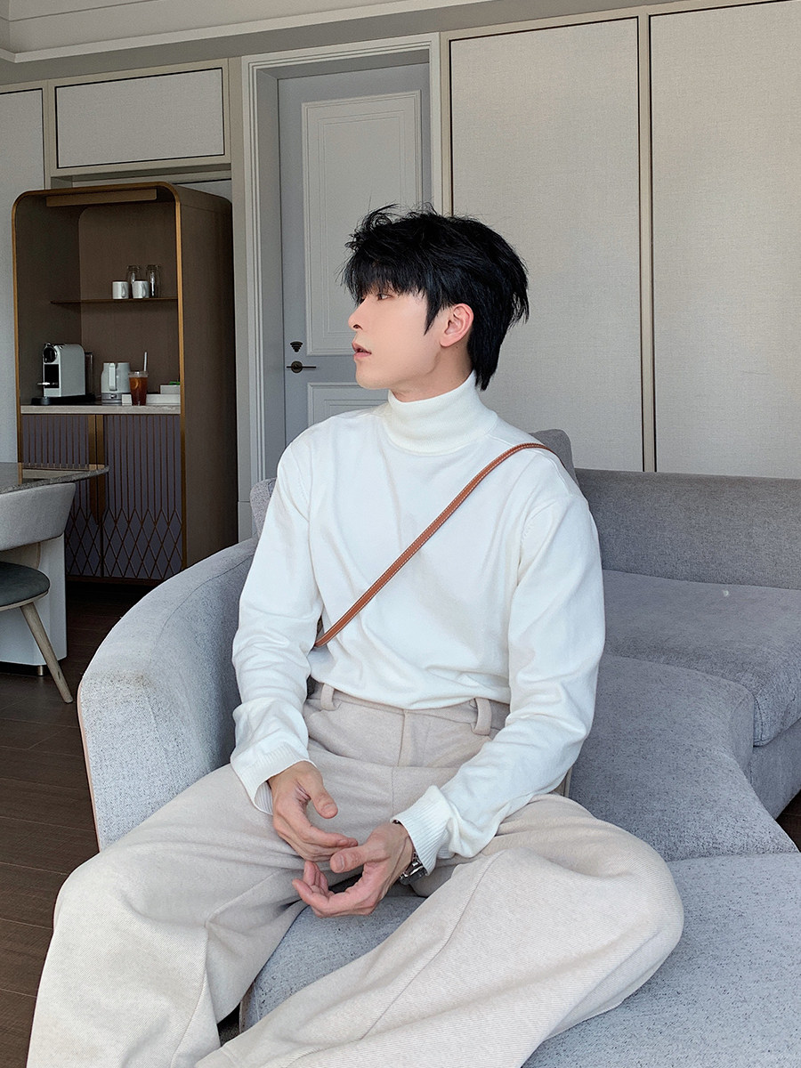 Hualun Men's Turtleneck Sweater Winter Inner Layer Top Men's Solid Color Base Shirt Korean Style Couple Versatile Knitwear