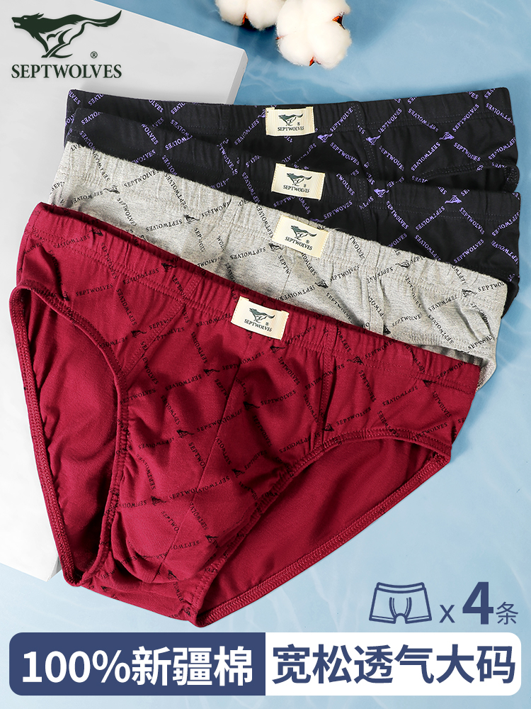 Septwolves Pure Cotton Briefs Men's Underwear Men's All-Cotton Three-Cornered Men's Briefs Large Size Shorts