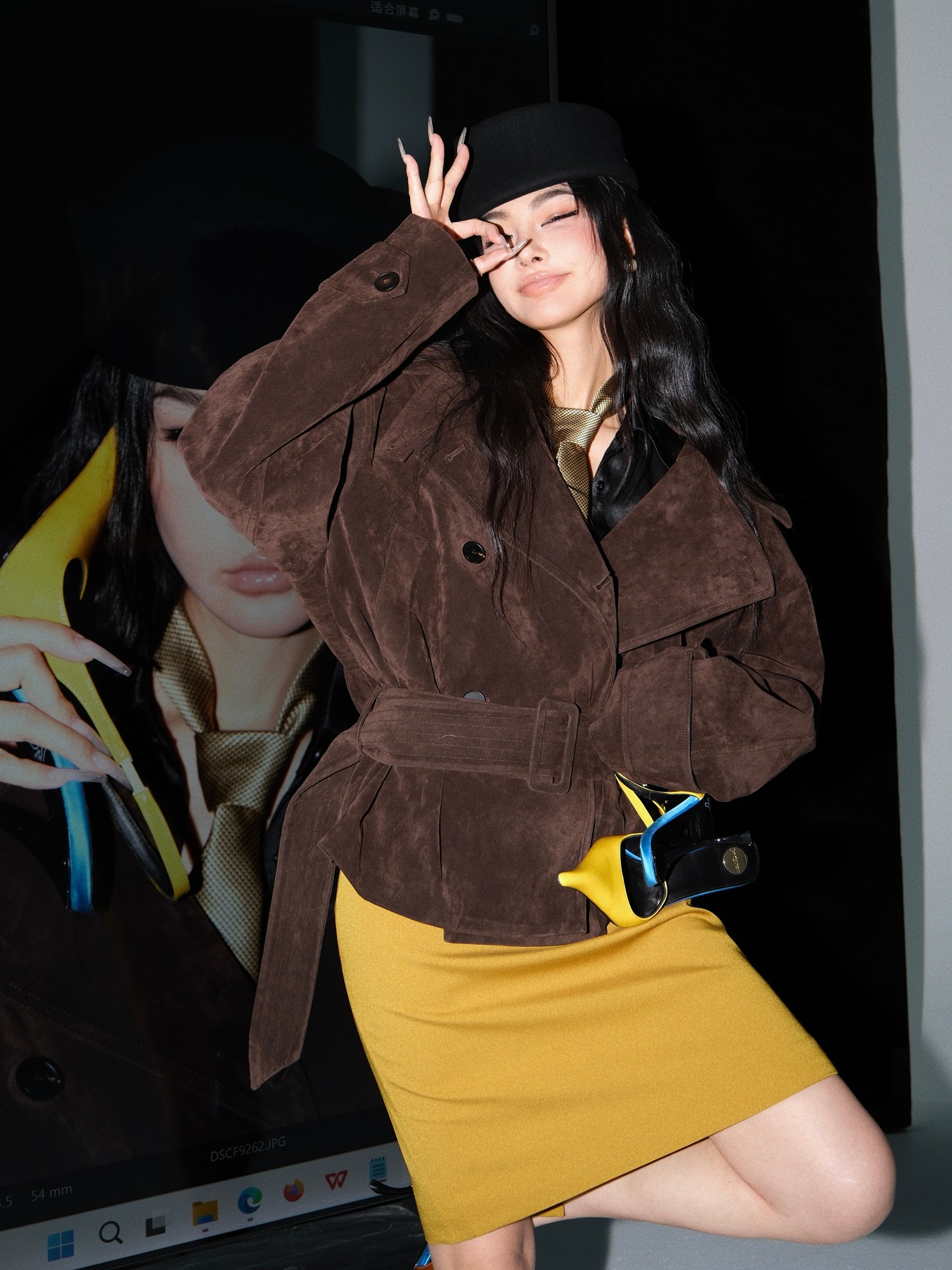 Zha San Guan Chocolate-Colored Vintage Waist-Cinching Double-Breasted Short Coat for Women, Autumn and Winter 2025 New Style Elegant Top