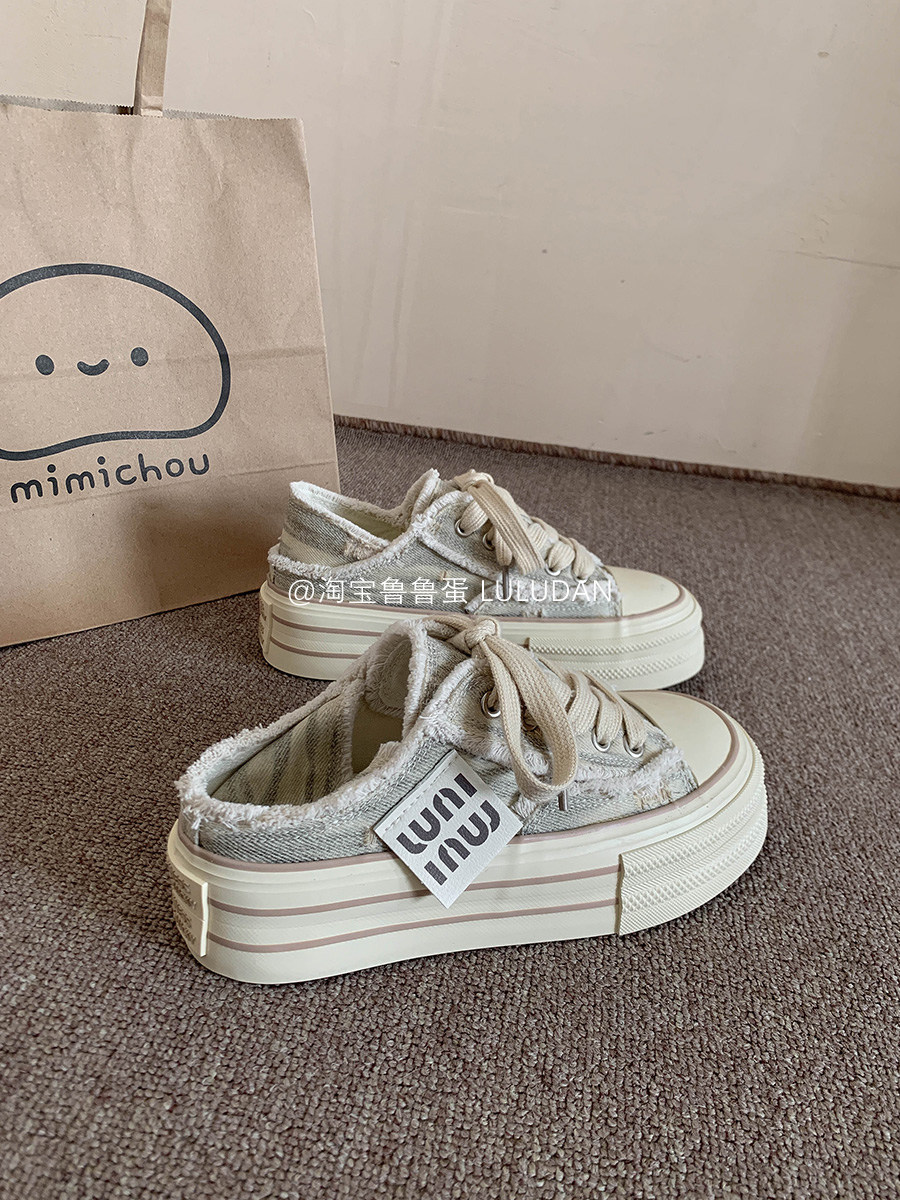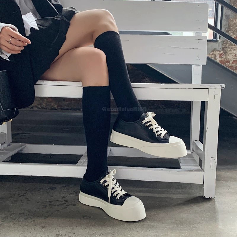 Hong Kong Genuine Leather Casual White Shoes for Women 2025 Spring and Autumn Platform Thick-Soled Low-Top Trendy Lace-Up Canvas Shoes