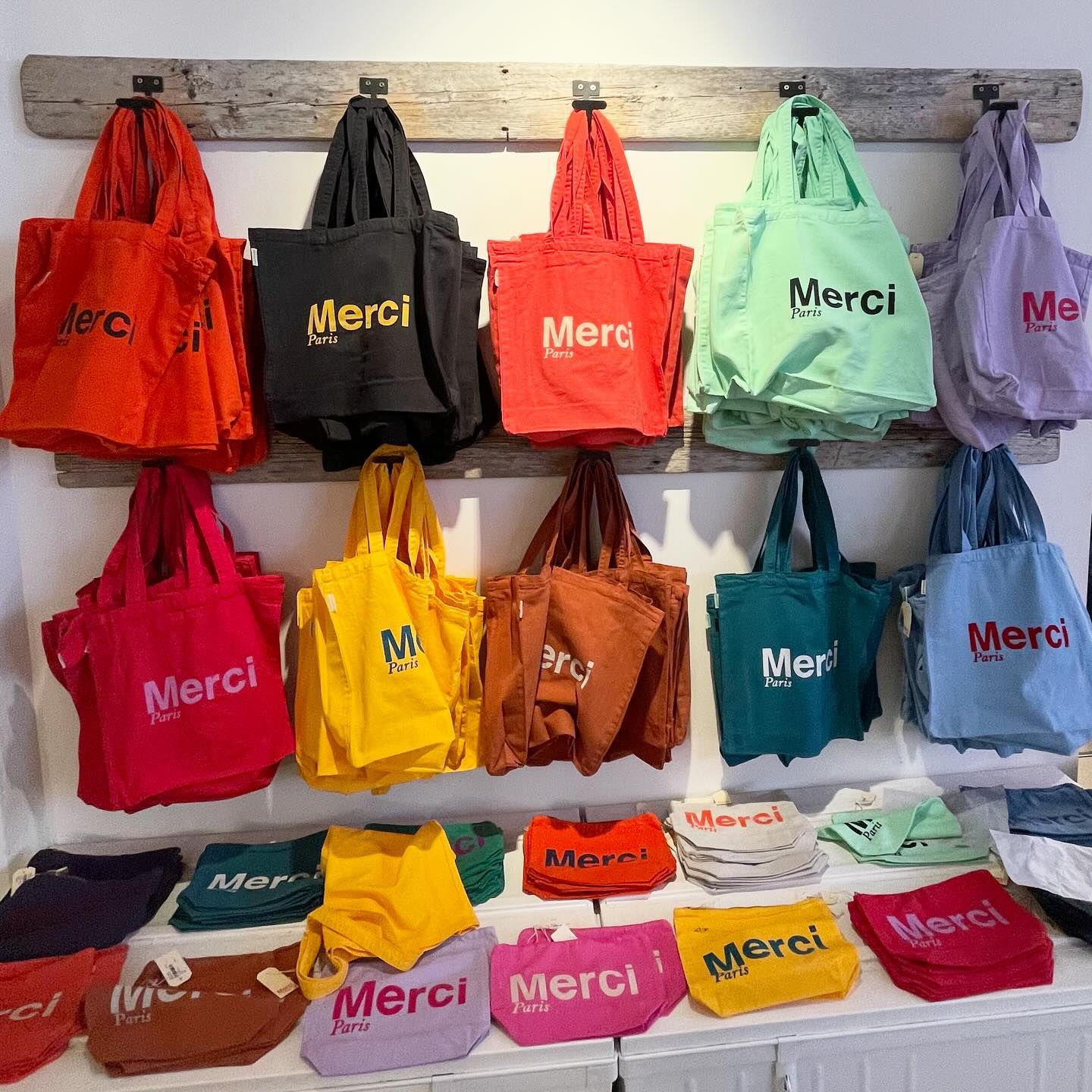 In-Stock Authentic Merci Canvas Bag from a Parisian Boutique, Colorful Large-Capacity Single-Shoulder Canvas Bag