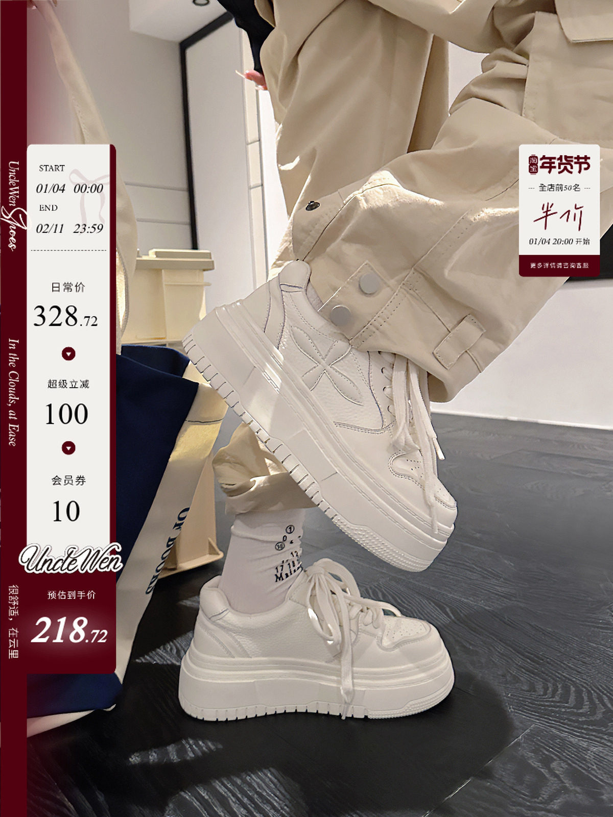 You100 New Trendy British Style Genuine Leather Short Boots Men's High-Top Casual Leather Shoes Martin Boots Workwear Thick Sole