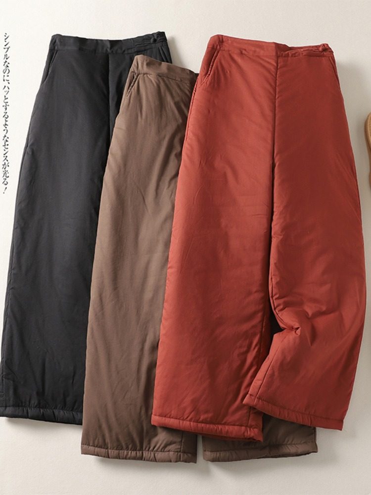 Acetate Wool Wide-Leg Pants for Women, Autumn and Winter, Fleece-Lined, Petite, Drapey, Slim-Fit Straight Pants, Herringbone Pattern Woolen Trousers