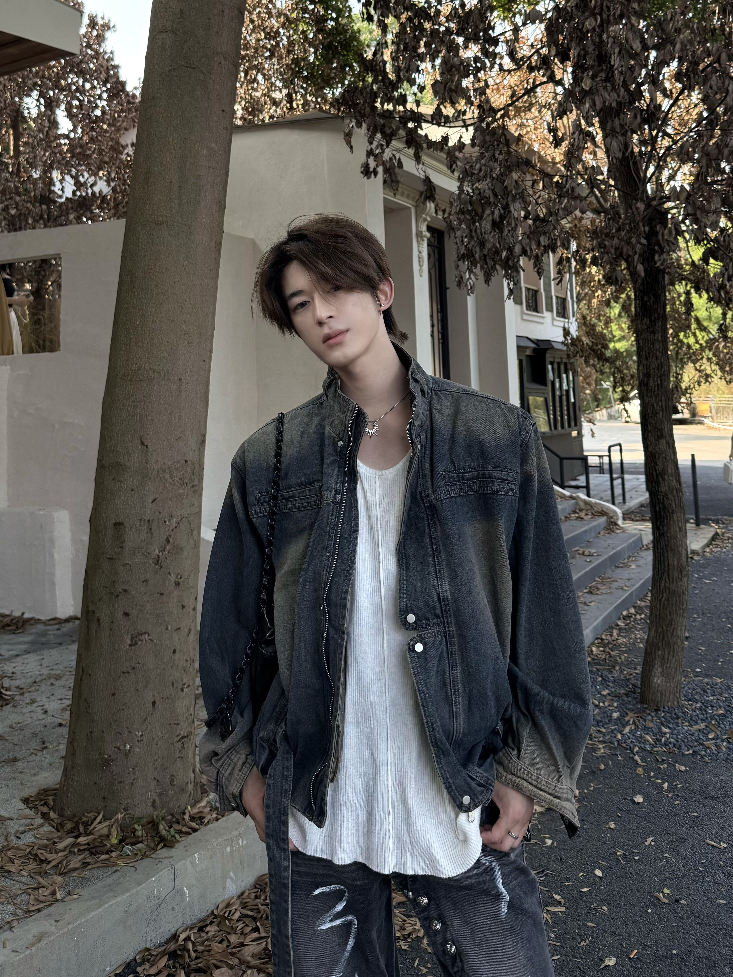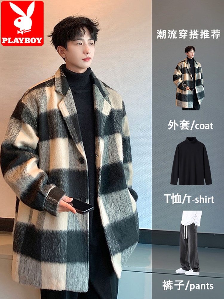 【Jianchuan】Autumn Japanese Retro Vintage Style Single-Breasted Stand Collar Heavyweight Faux Two-Piece Short Woolen Coat for Men