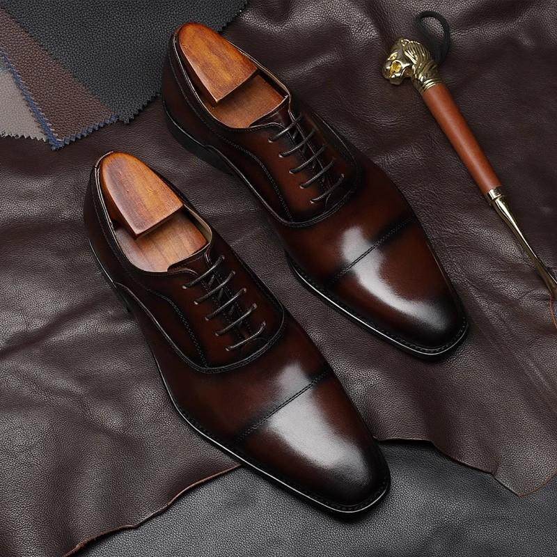Mazzucato Business Formal Leather Shoes Genuine Leather Square Toe Oxford Shoes Handmade Wedding Groom Shoes Three-Joint Men's Shoes