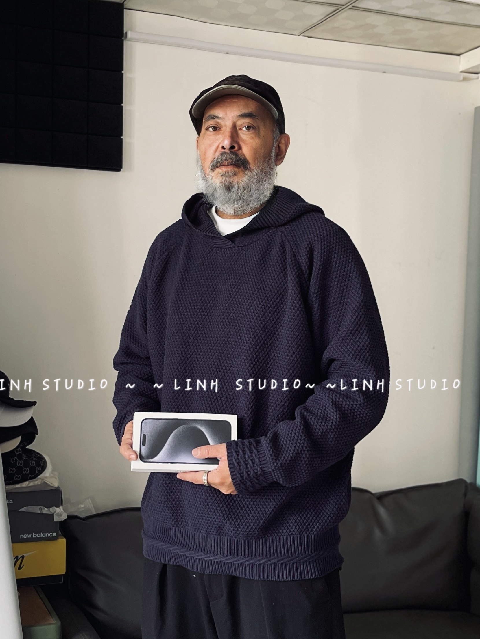 Linh24Fw Japanese Retro Anti-Pilling Cotton Sweater with Hood for Men, Versatile High-End Osmanthus Stitch Knit Top