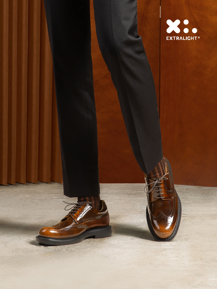 【Increase Height by 5.7Cm】Thomwills Brogue Leather Shoes for Men Casual British Business Brown Derby Shoes Winter