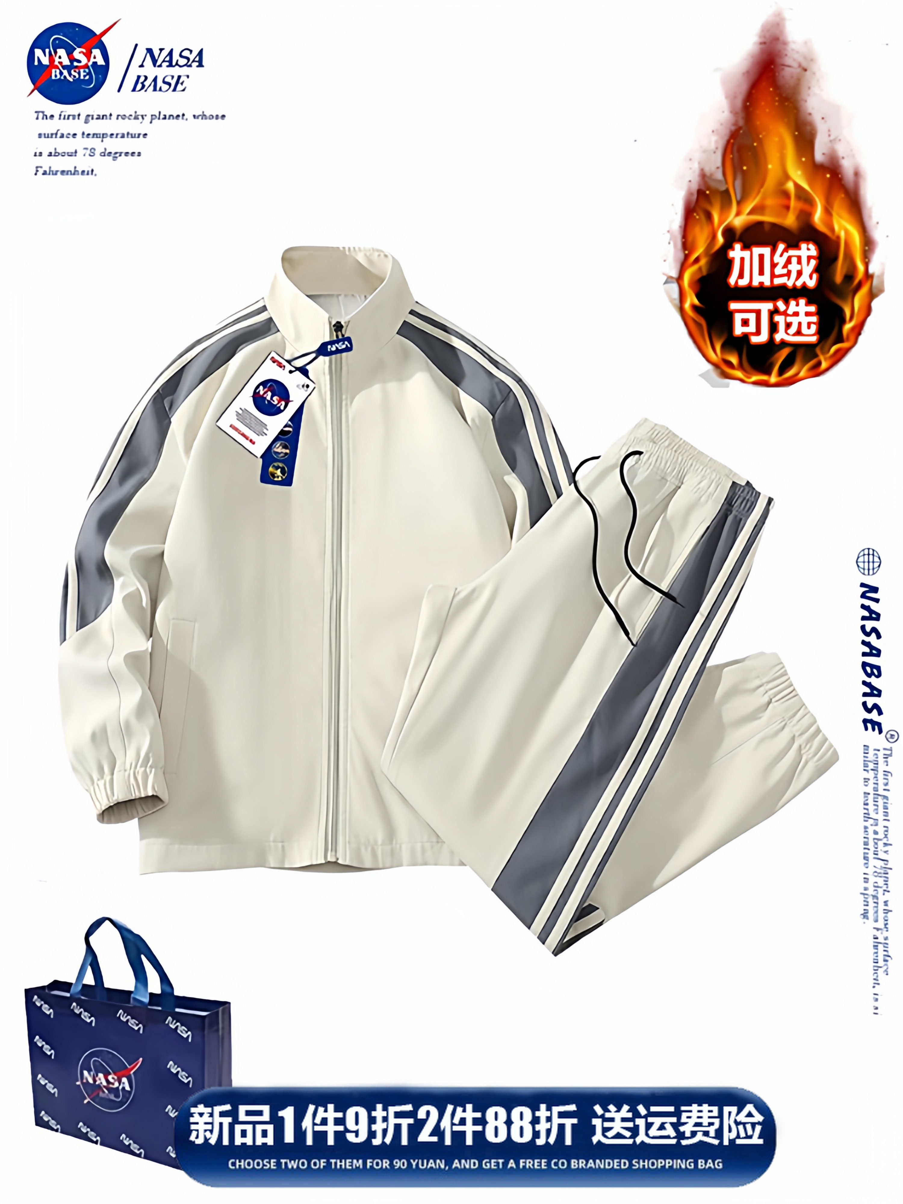 Nasa Co-Branded Fleece-Lined Sports Suit Men's Jacket Autumn and Winter American Casual Long-Sleeved Jacket Men's Jogger Pants Set