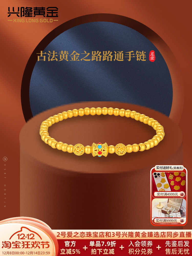 Zhou Shengsheng Gold Pure Gold Micro-Sugar Series Ginkgo Leaf'Apricot' Fortune Bracelet 95571B Pricing