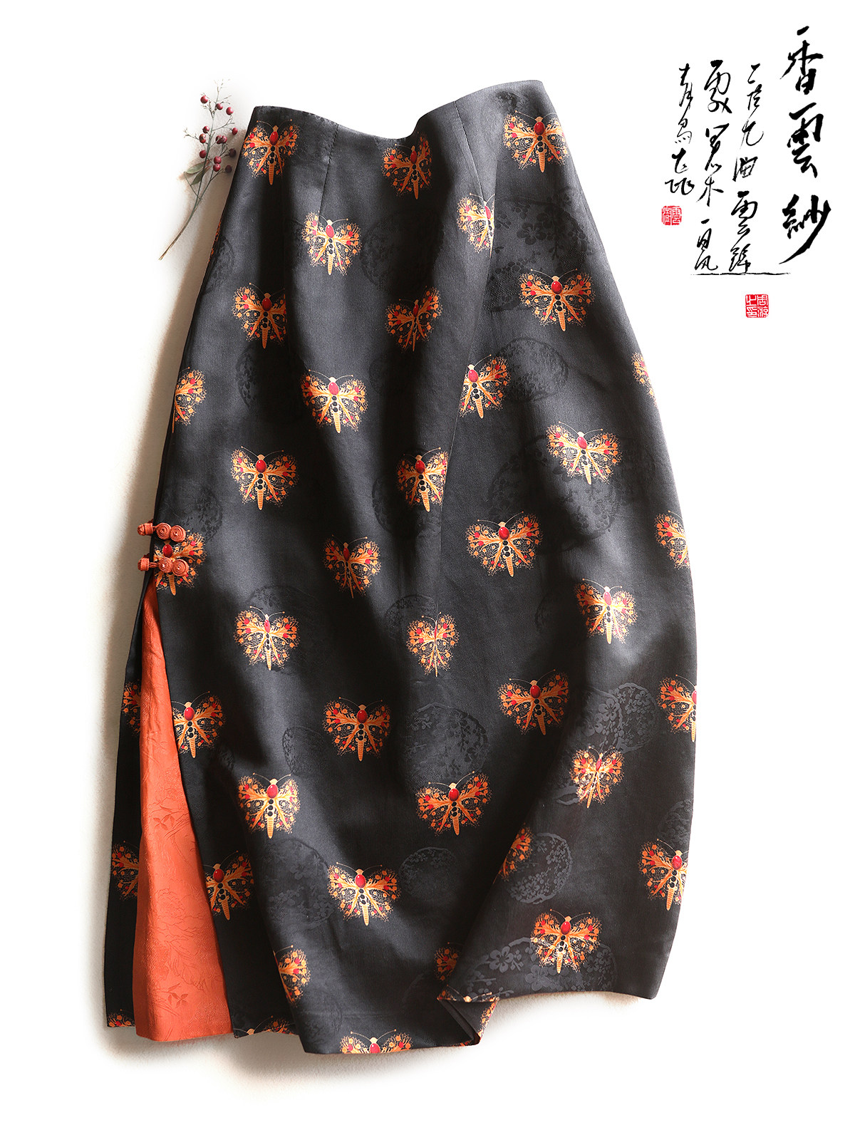 Yunshu Original Floral Fragrant Cloud Silk New Chinese Style Women's Clothing Mulberry Silk Printed Skirt Commuting Pencil Skirt