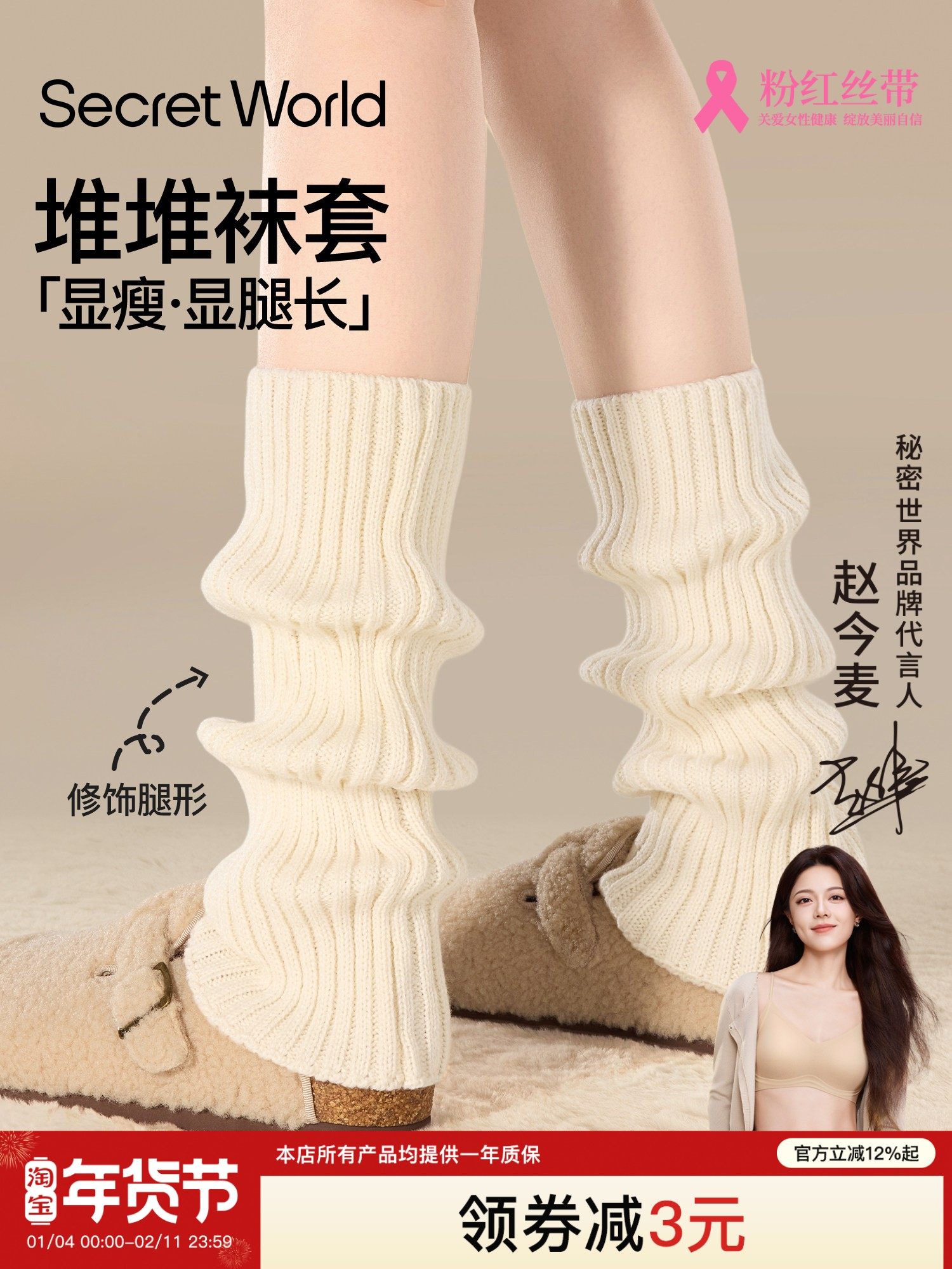 Women's Autumn and Winter Warm Long Socks, White Calf Socks, Thickened Mid-Calf Socks, Knitted Slouch Socks for Boots