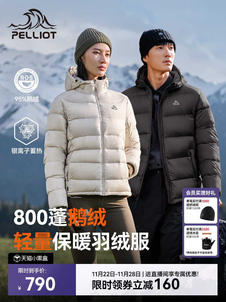 [Classic 2.0] Pelliot Outdoor 800 Fill Power down Jacket Women's Windproof Lightweight Short Goose down Coat Men's