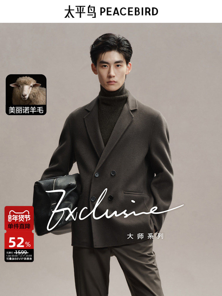Peacebird Men's Clothing Woolen Coat Men's Winter New Double-Breasted Suit Wool Short Coat Men