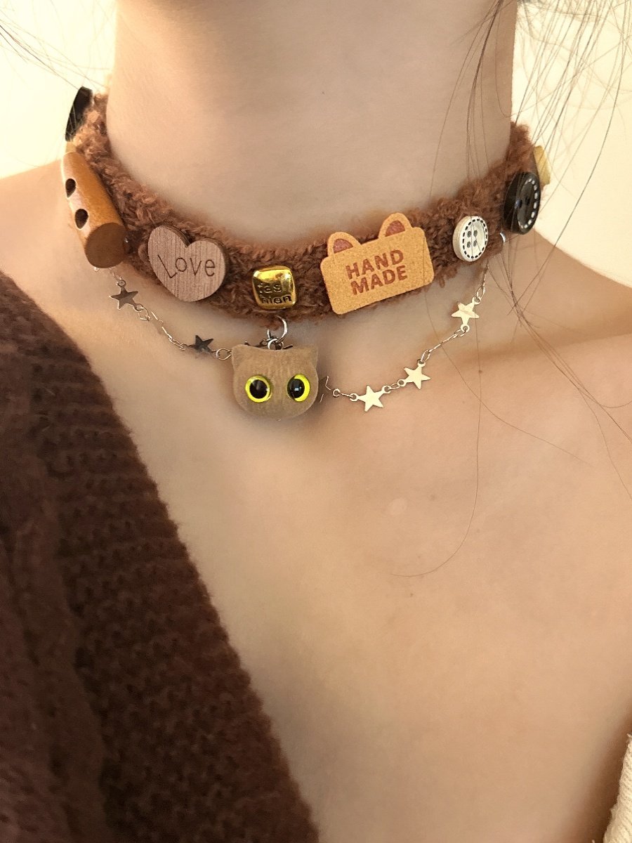 Maillard Brown Kitten Choker Necklace Women's Autumn and Winter Cute and Sweet Accessories Sweet and Cool Sexy Sweater Chain