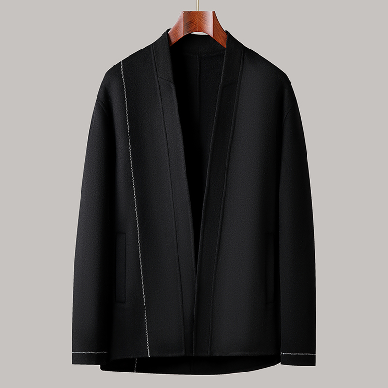 Autumn and Winter Collarless Slightly Flared All-Wool Coat Men's Trendy Chinese Style Fashion Short Cape Blazer Jacket
