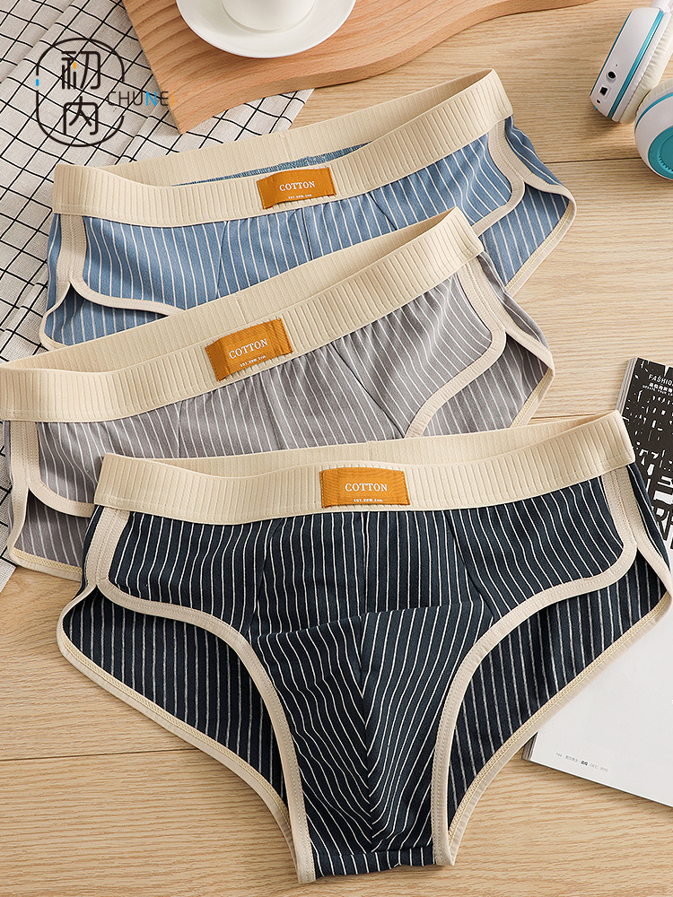 New Pure Cotton Men's Underwear, Men's Briefs, Striped Stylish Men's Sports Briefs, Sexy Trendy Shorts