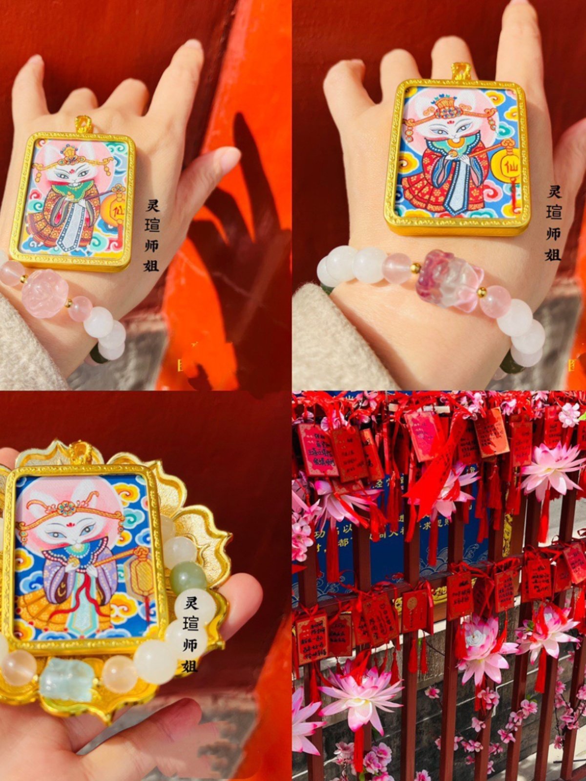Sister Lingxuan|Hetian White Jade Strawberry Crystal Nine-Tailed Fox Bracelet for Women, Peach Blossom Bracelet, Original Gift, Thangka