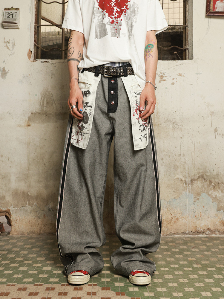 High Street Trendy Workwear Denim Jacket for Men, Spring and Autumn Hong Kong Style New Lapel Jacket, Loose Retro Coat for Teenagers