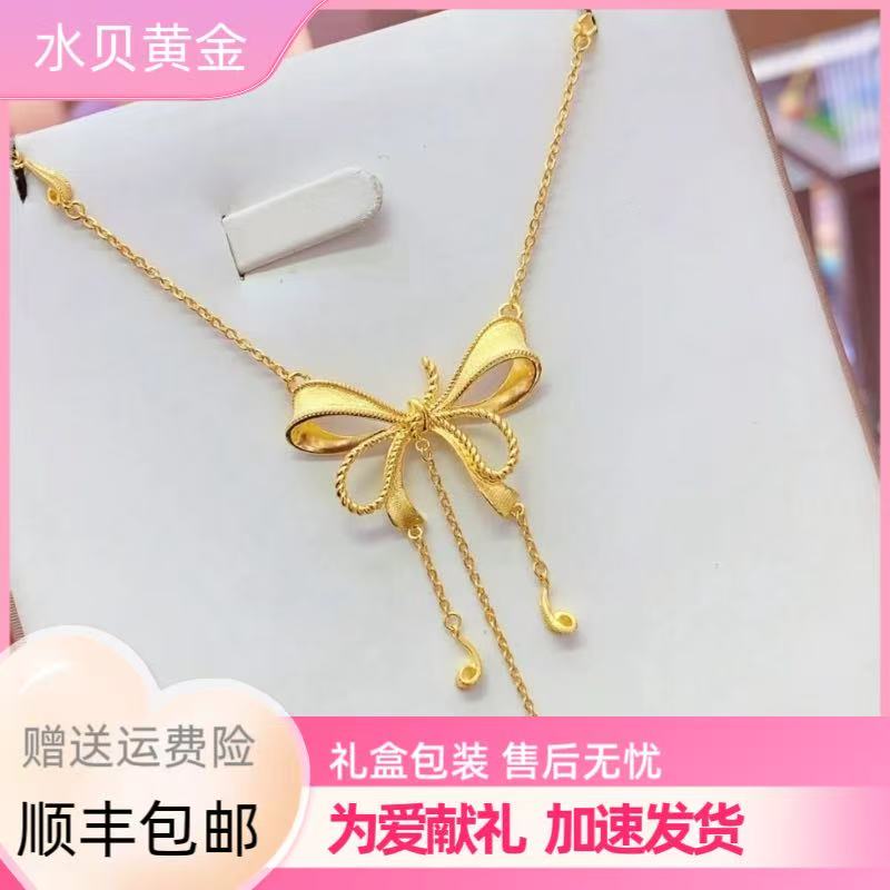 Water Shell Gold Necklace Fugitive Princess Bow 999 Pure Gold Pendant Heart Tassel Integrated Chain Set for Girls