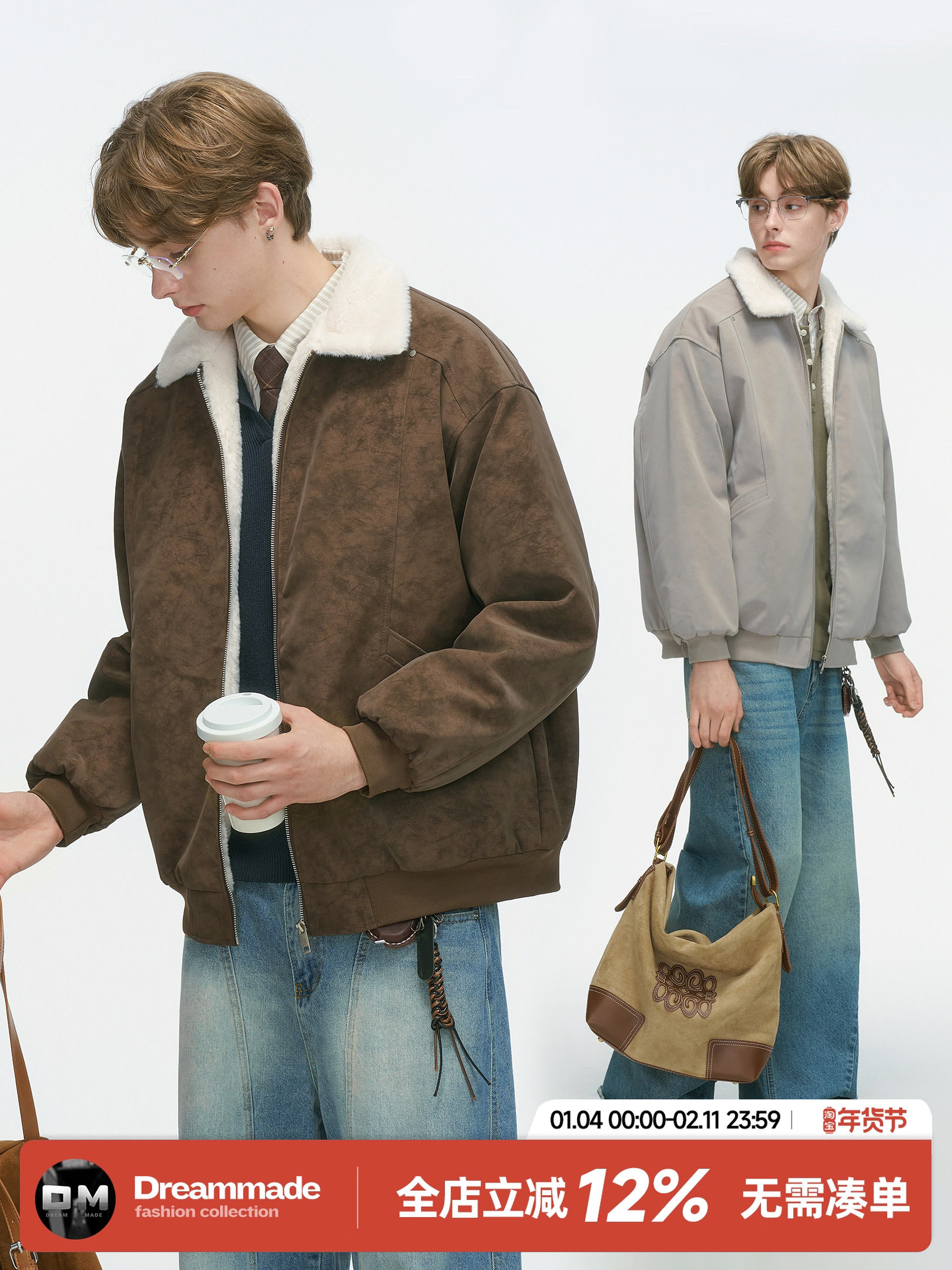 Dream Made American Barn Style Lamb Wool Pu Leather Cotton Jacket Men's Winter Thickened Cotton Coat Men's Winter Jacket