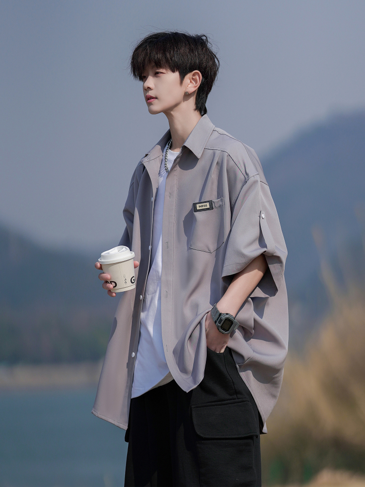 Erge Ice Silk Short-Sleeve Shirt for Men, New Summer Style, Men's Top with a High-End Feel, Casual Loose Fit, Men's Shirt Jacket